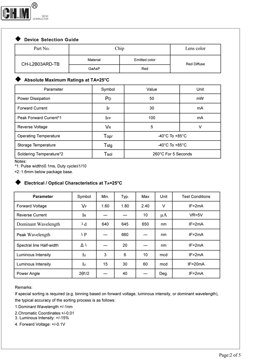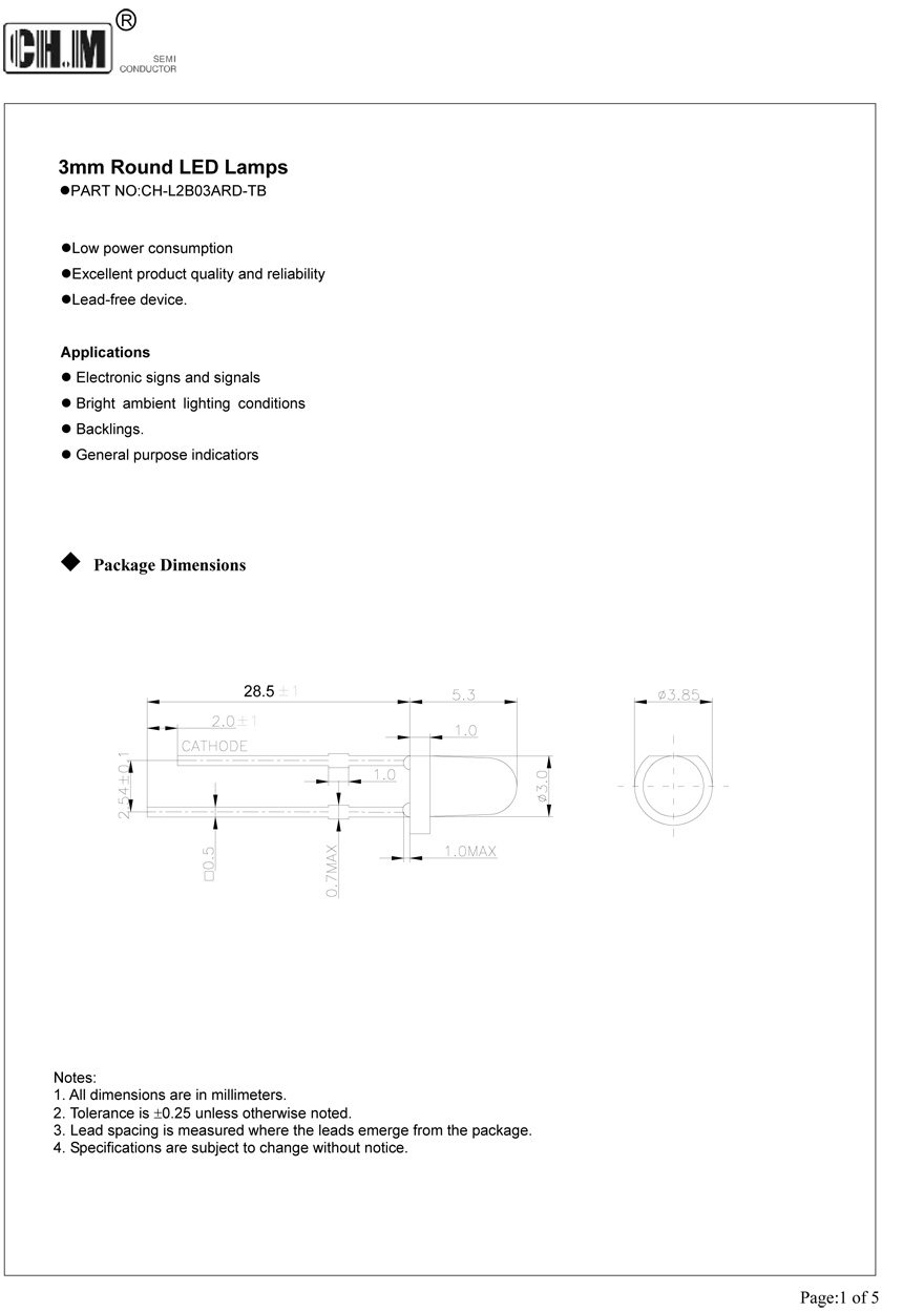Description:3mm Round LED Lamps,eLow power consumption,Excellent product quality and reliability,Lead-free device.