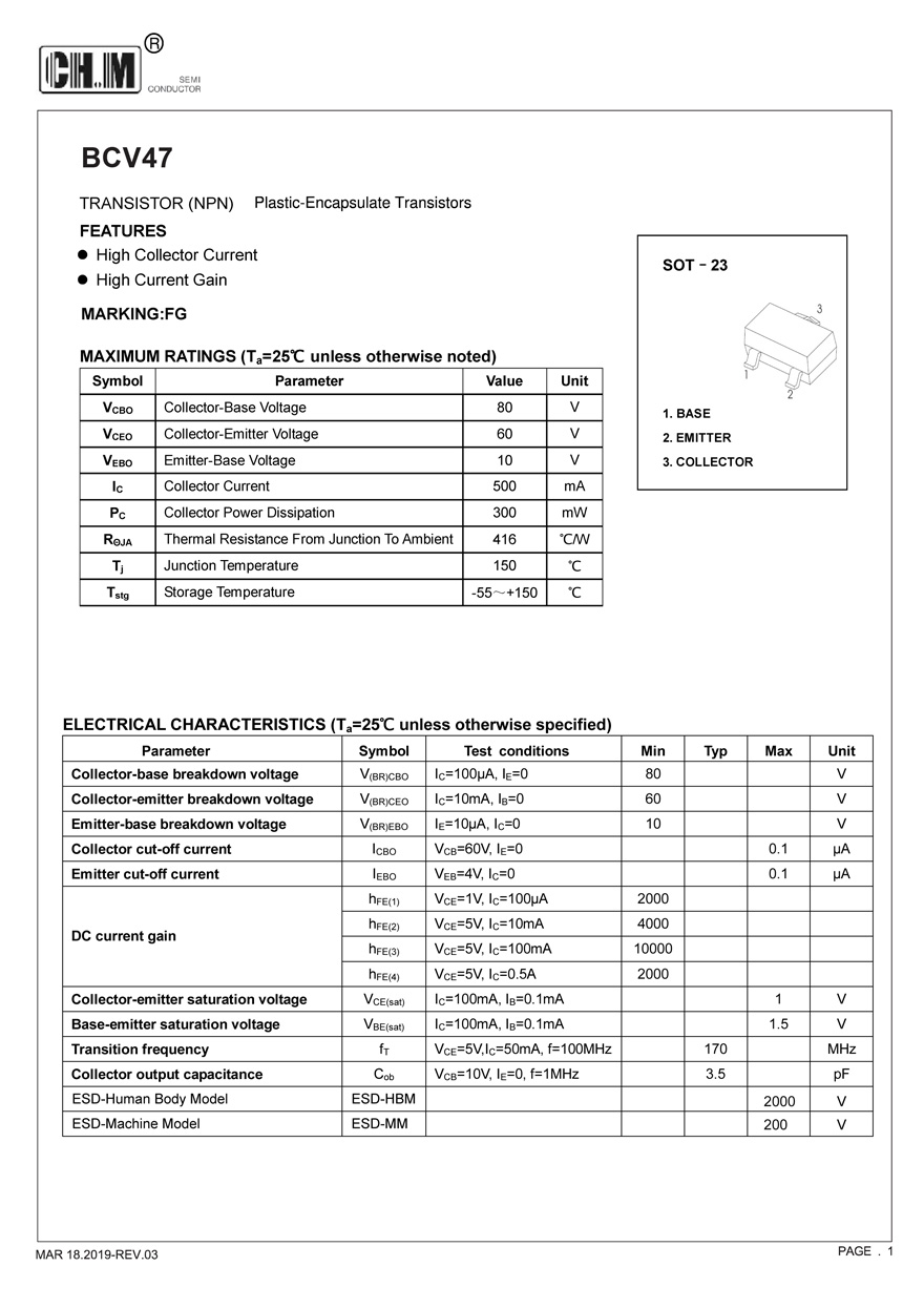 Description:High Collector Current,High Current Gain.TRANSISTOR (NPN)Plastic-Encapsulate Transistors.