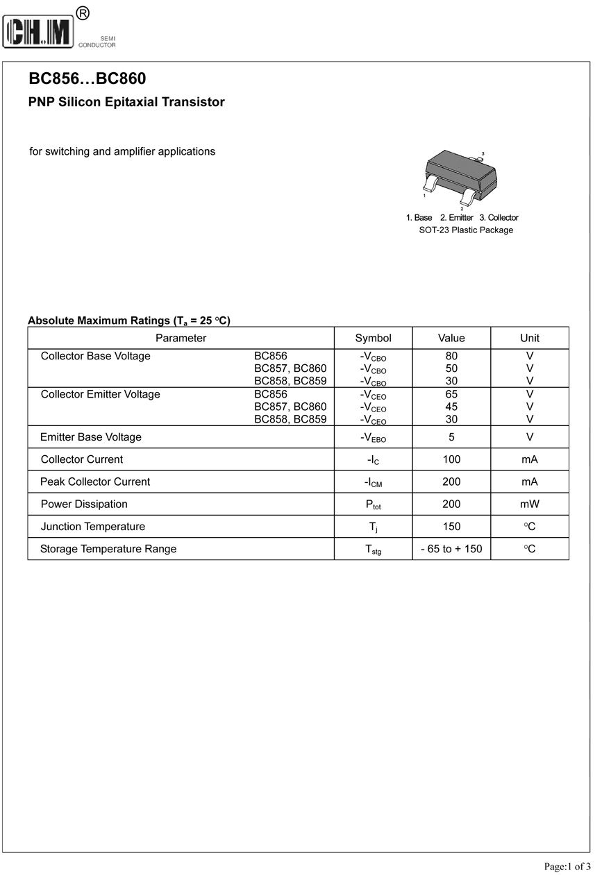 Description:PNP Silicon Epitaxial Transistor,for switching and amplifier applications.